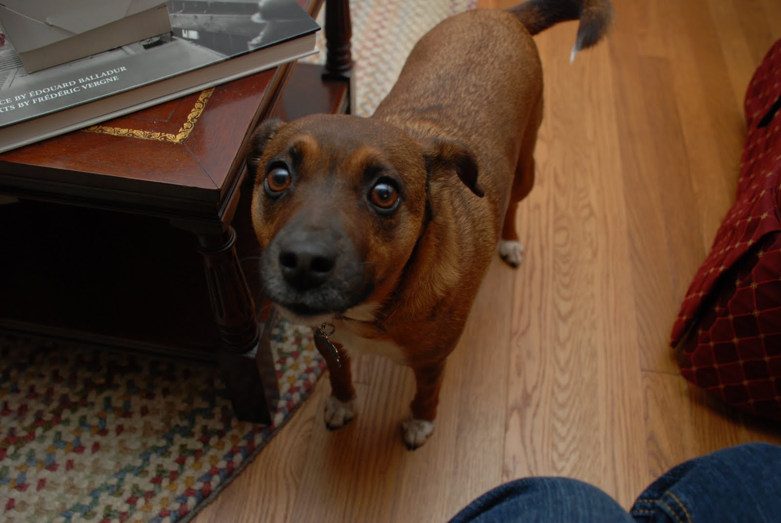 Our little dog is growing up...*tear*. Since the day we got our dog, Maggie, she has slept in our kitchen at night. Every night we put her bed by the sink and put up the doggie gate (actually, a baby gate). She knows then it is bedtime and every night she jumps onto the couch and puts her ears back like saying, "Please let me sleep here tonight Mommy!" The reasons for doing this ritual every single night is because early on Maggie liked to chew and we found out the hard way many times. Coming home to an eaten box of Kleenex, or a destroyed doggie bed strewn all over the floor was not uncommon. We simply couldn't trust her to go all night without tearing something up.